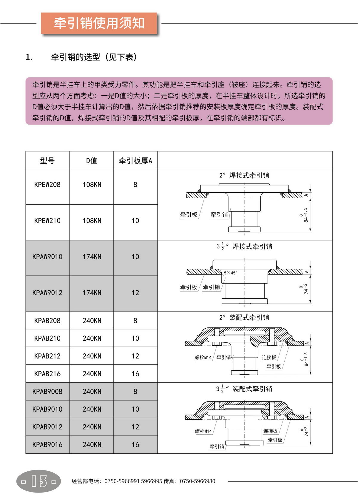 鞍座 · 牽引銷【產(chǎn)品使用說(shuō)明書】